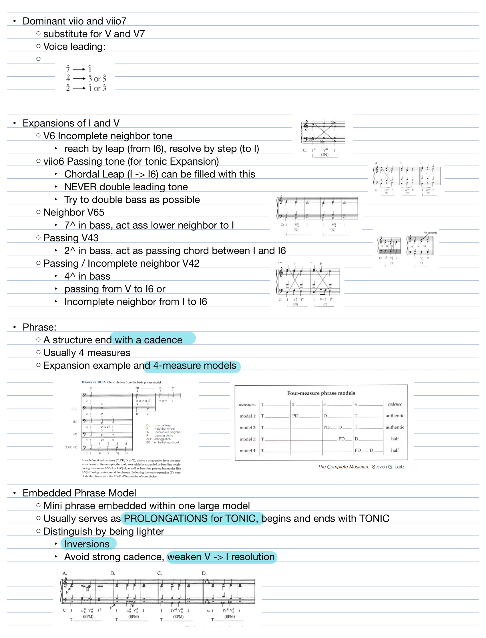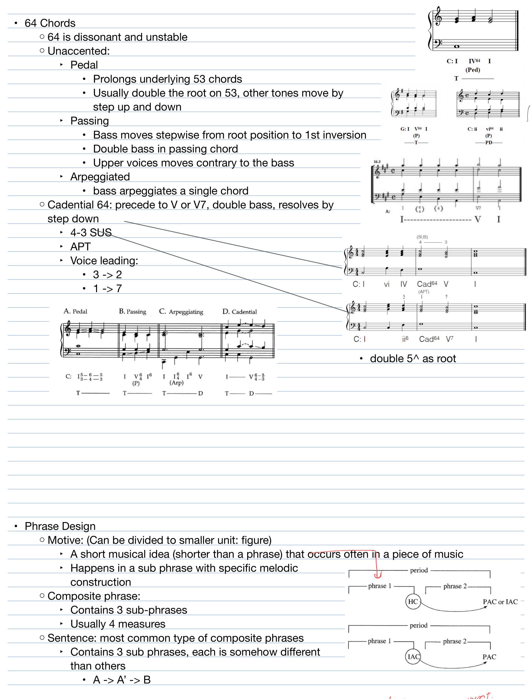 - Analyze and write phrase designs: motives, sentences (A–A′–B), periods (parallel/contrasting), double periods, and embedded phrase models.