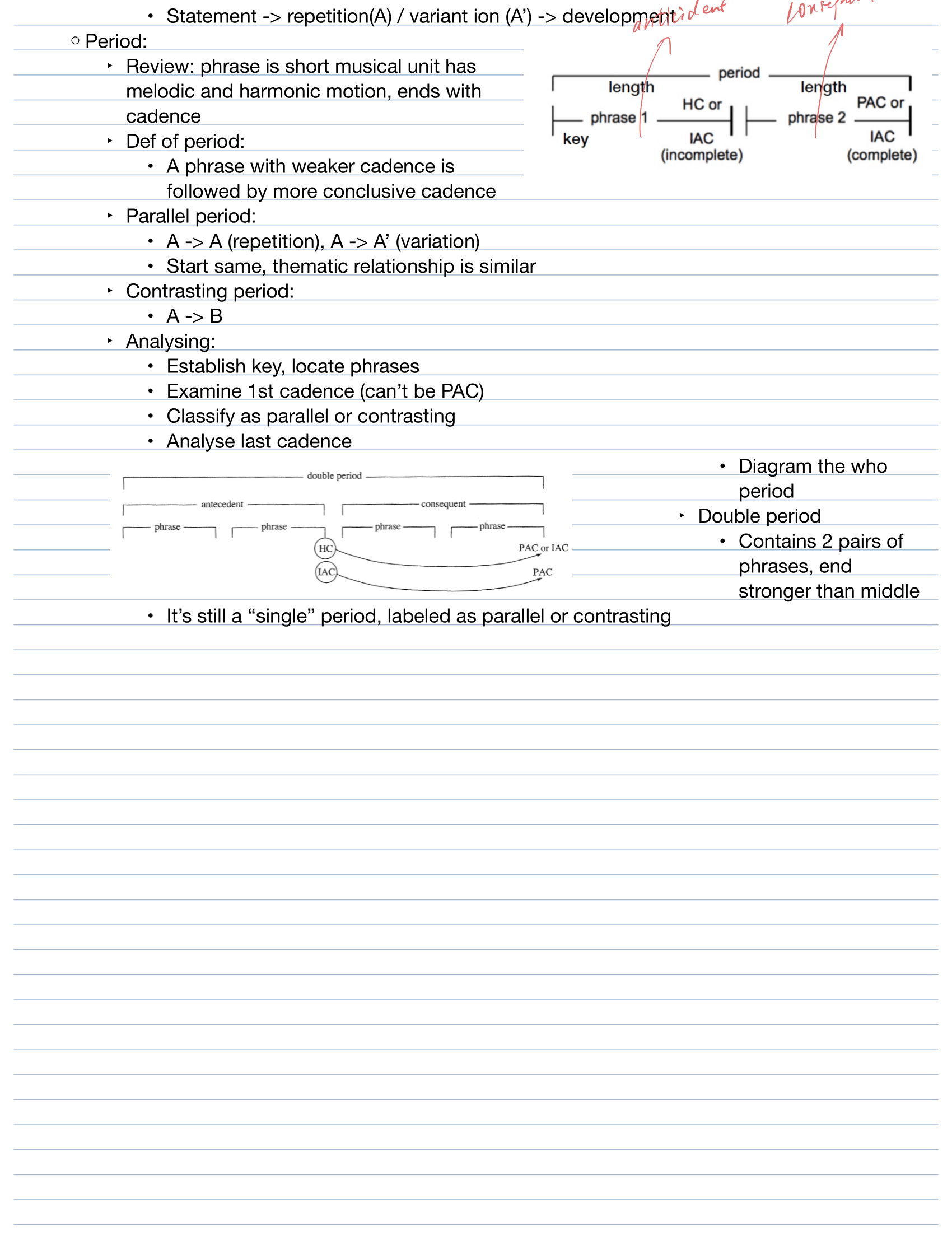 - Period: antecedent (weaker cadence) → consequent (stronger cadence).